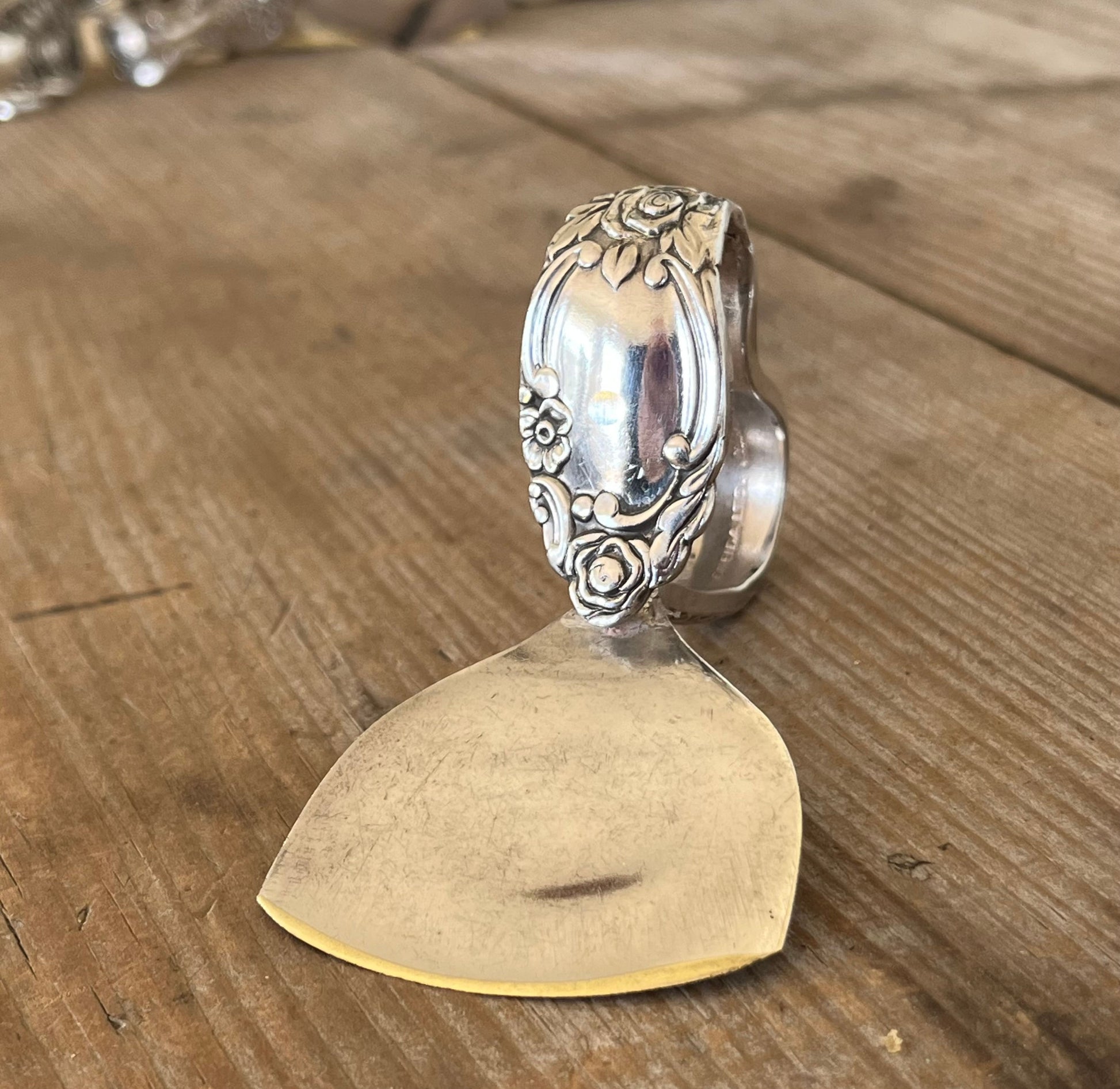 Meet the ORIGINAL Ergonomic Heart Handle Spoon Cheese Knife—and we mean original—exclusively designed and handcrafted by Laughing Frog Studio. Made from an upcycled vintage serving spoon, this piece blends sustainability with serious functionality.