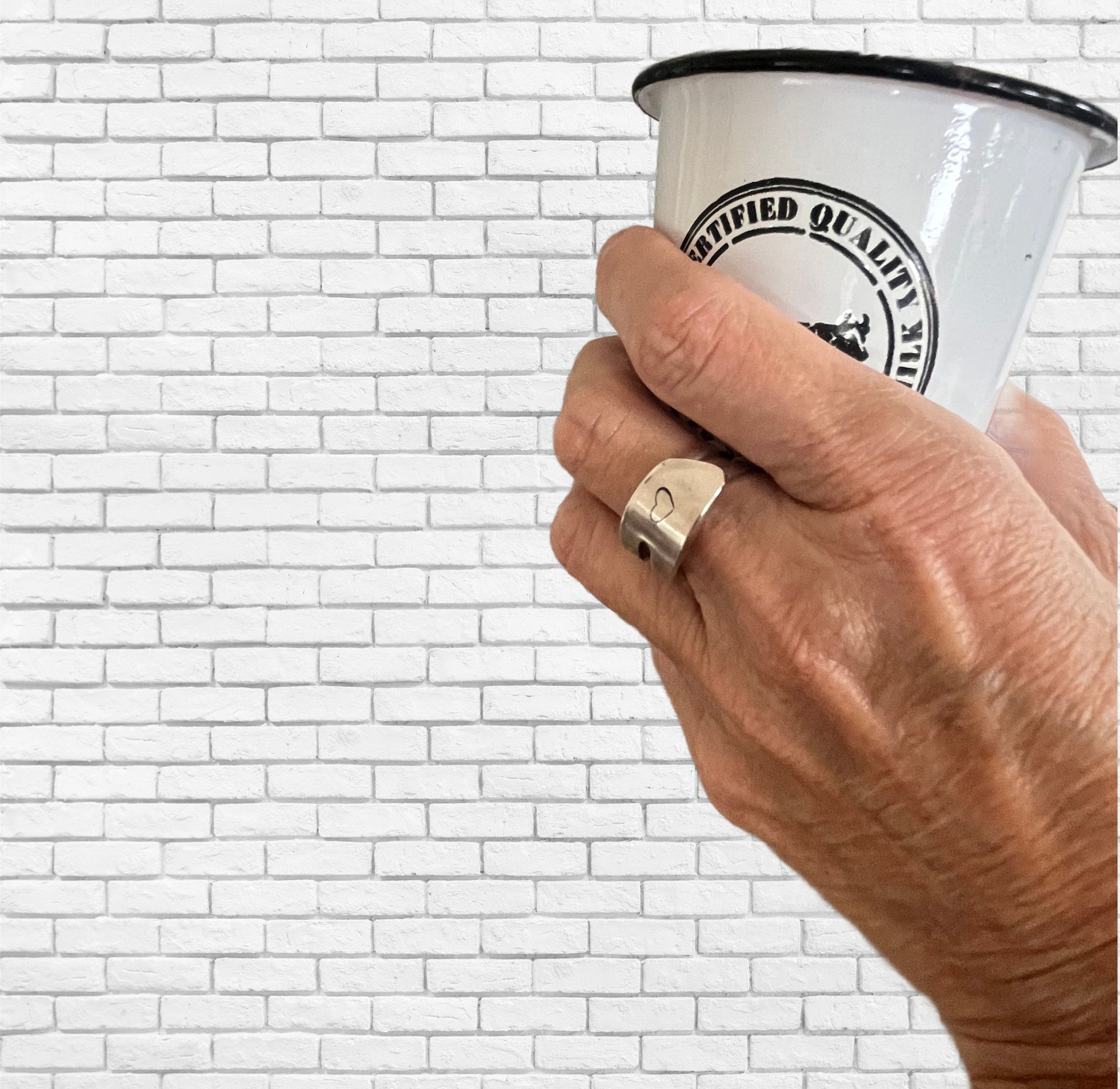Forks were made for eating—until this little rebel came along. This upcycled silverware ring was once the business end of a vintage fork, now bent into a bold, modern band and hand-stamped with a heart that says “I love polite rebellion.”