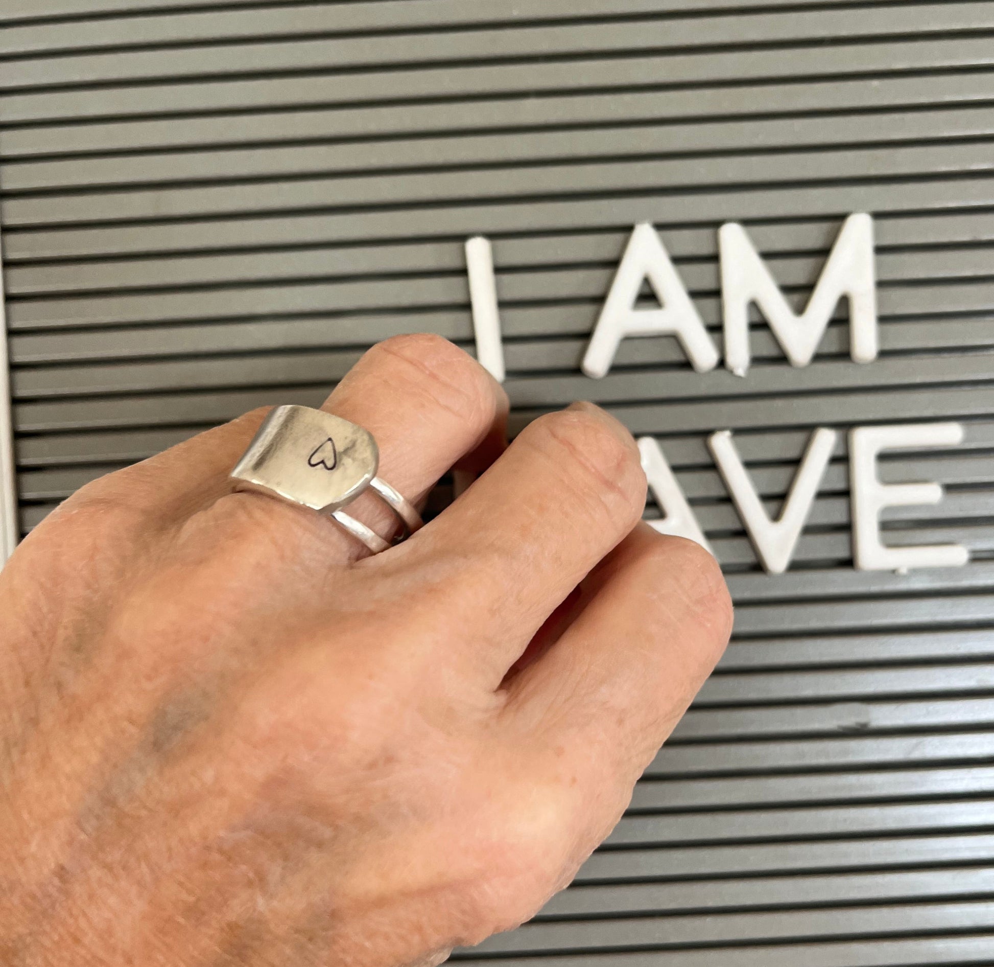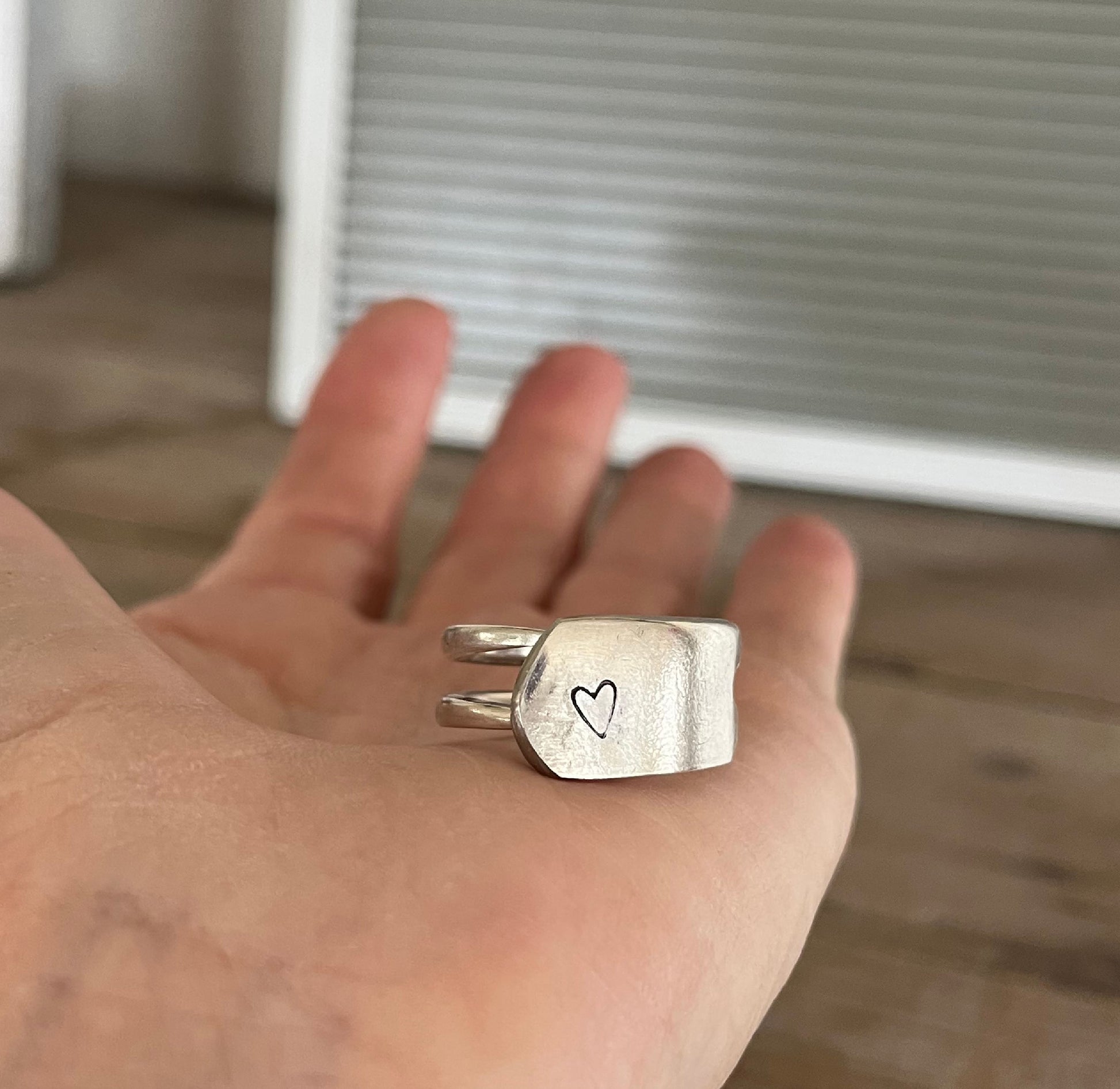 Forks were made for eating—until this little rebel came along. This upcycled silverware ring was once the business end of a vintage fork, now bent into a bold, modern band and hand-stamped with a heart that says “I love breaking the rules.”