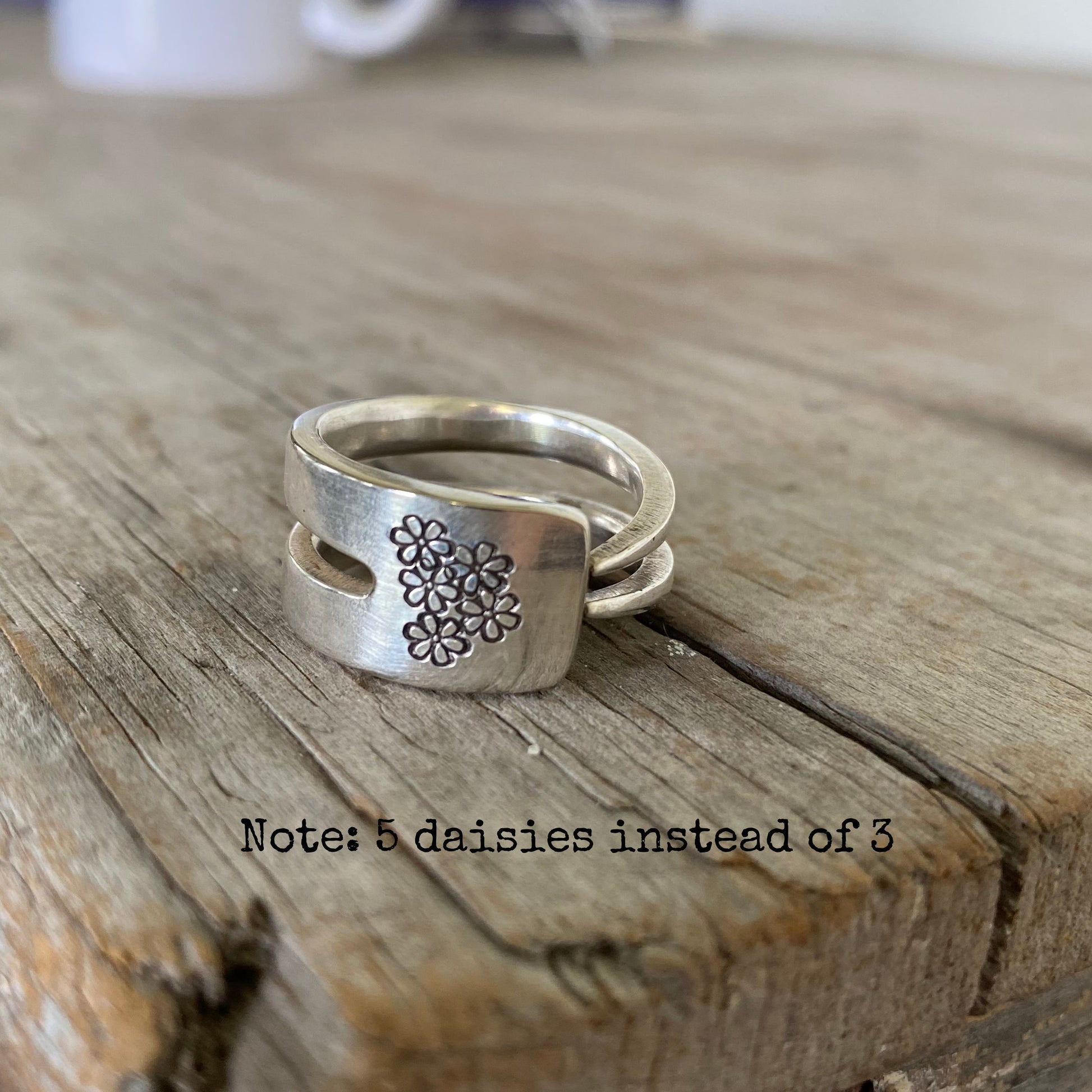 Fork Tine Ring - Double - Trio of Daisies - SIZE 9.5 - #5824