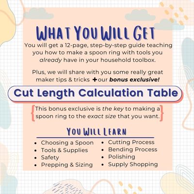 Plus, we will share with you some really great maker tips and tricks including our BONUS EXCLUSIVE - Cut Length Calculation Table - which is the key to making a spoon ring to the exact size that you want!