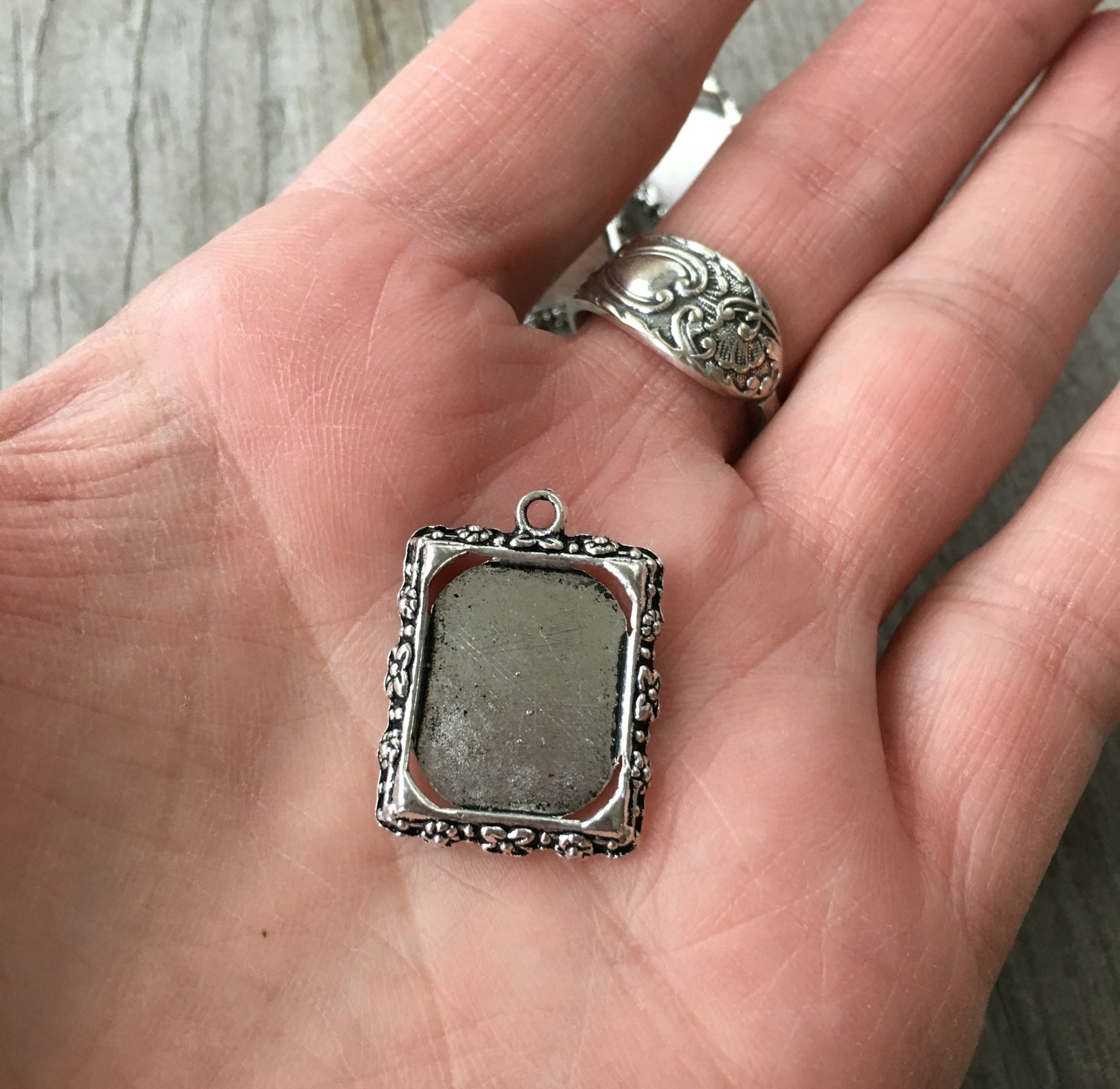 Antique Silver Tone Victorian Frame Charms are Lead Free and Nickel Free Zinc Alloy Metal.