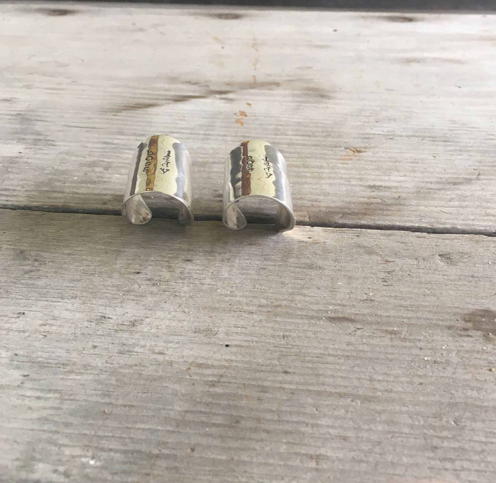 For an artsy edgy look wear this bold spoon bowl cuff ring alone or with a myriad of other silver rings. This spoon ring is made from the bowl portion of the spoon. Prior to being bent into a long cuff ring, this spoon bowl was stamped with BOSS LADY.