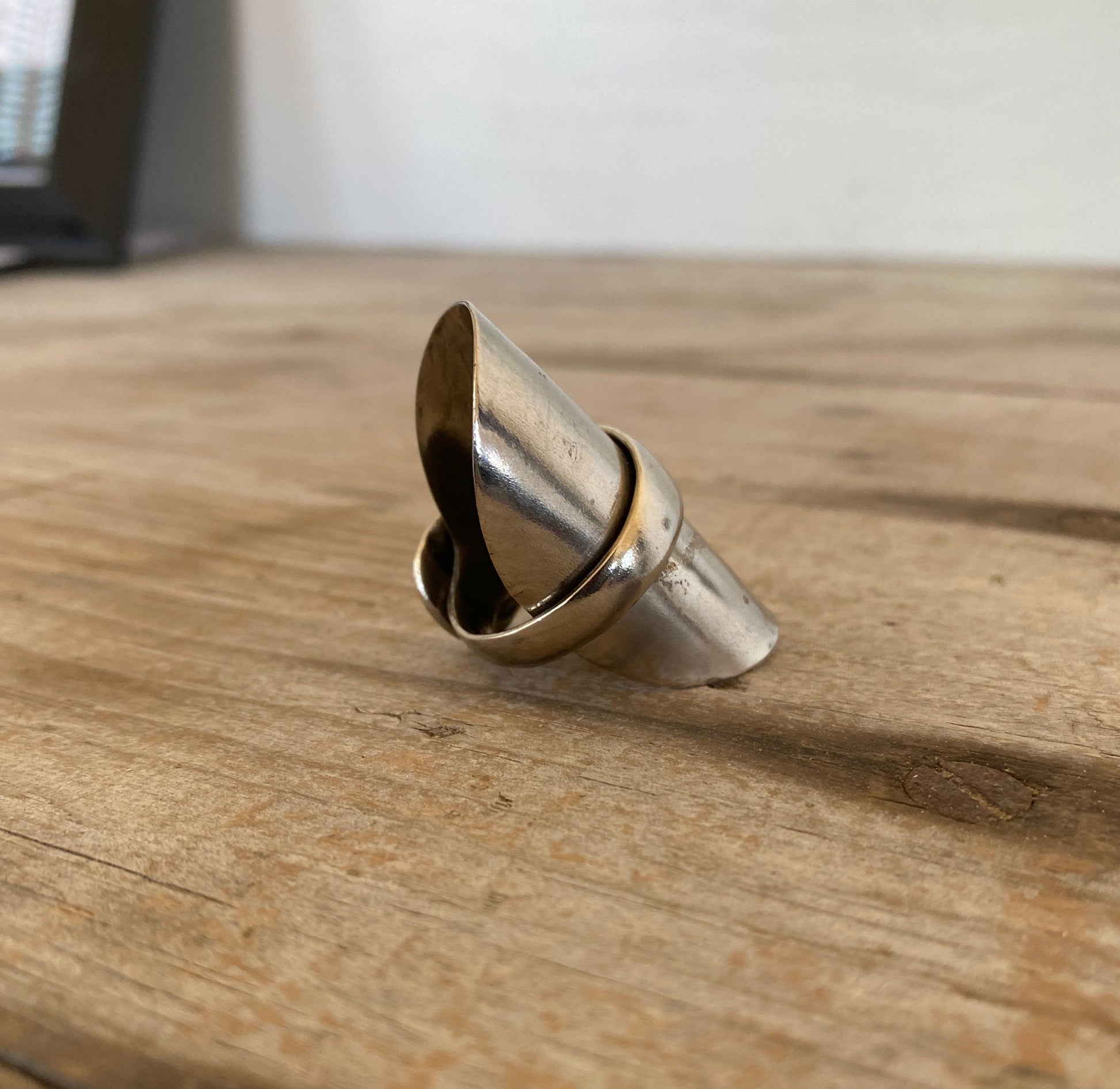 For an artsy edgy look wear this bold spoon bowl ring alone or with a myriad of other silver rings. This spoon ring is made from the WHOLE spoon. Simple modern and smooth.
