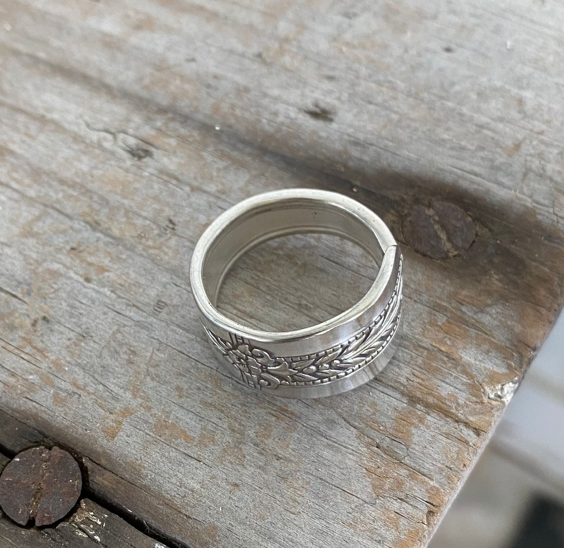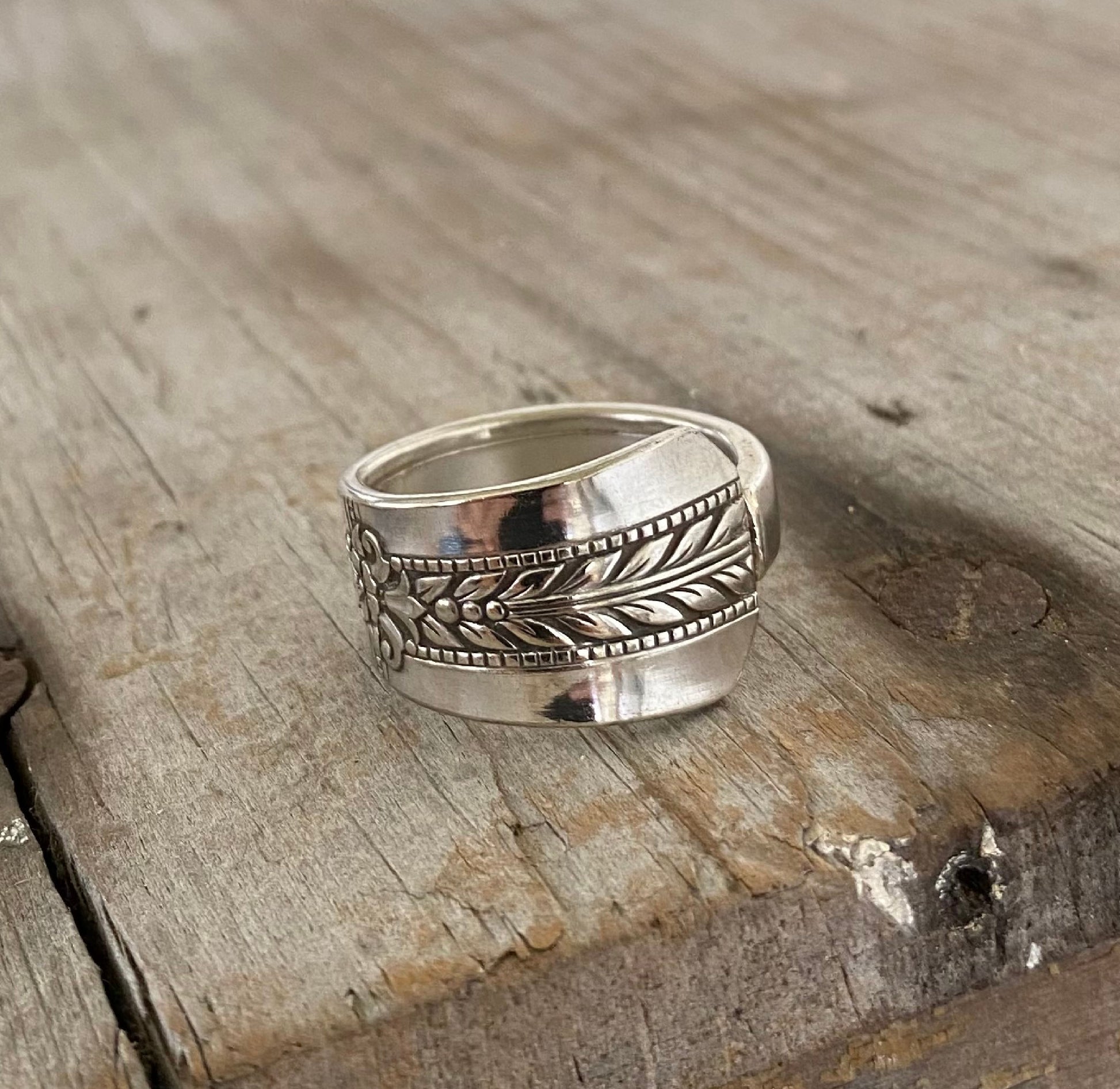 You cannot go wrong with this classically designed spoon ring. This upcycled silver jewelry piece is created from the handle of a spoon. This piece has a balanced and aesthetically pleasing art deco influenced design that simply withstands the test of time.