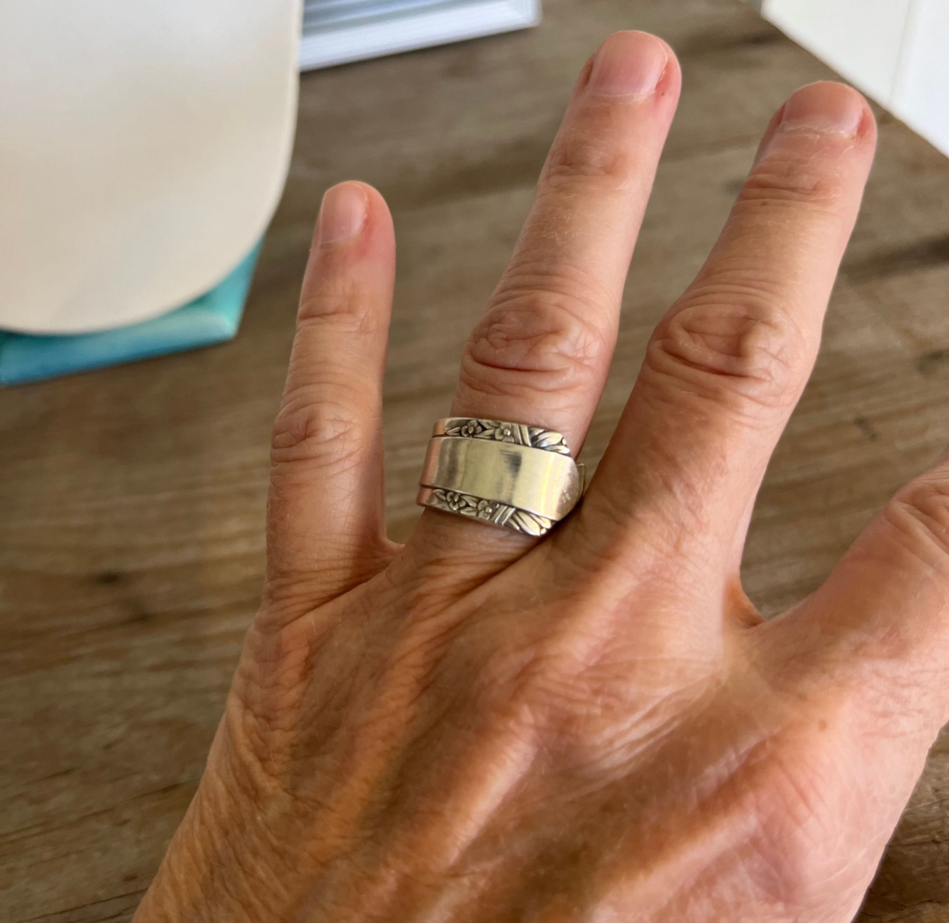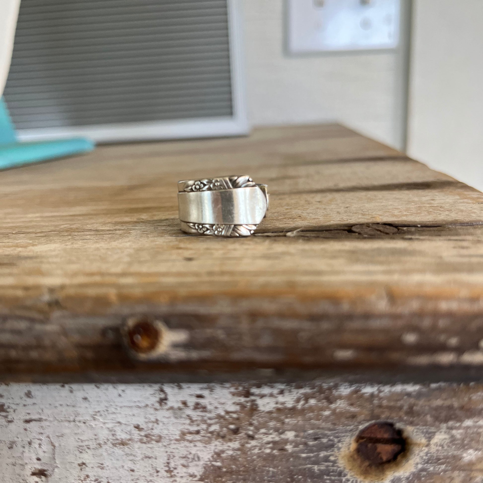 A spoon ring lover's spoon ring. Simple yet beautiful upcycled silverware. The sweet design on this ring is classic 1940s!